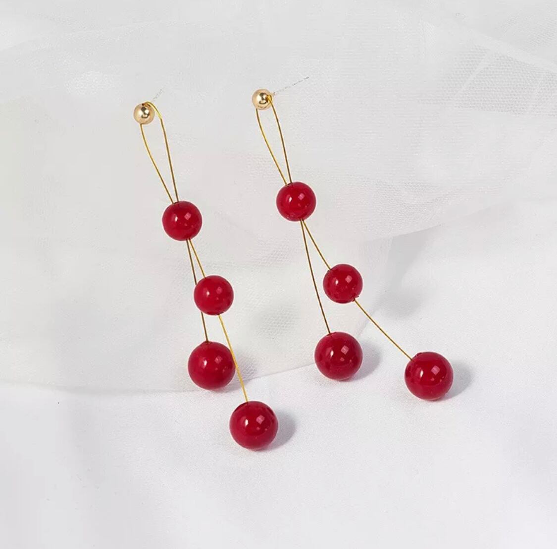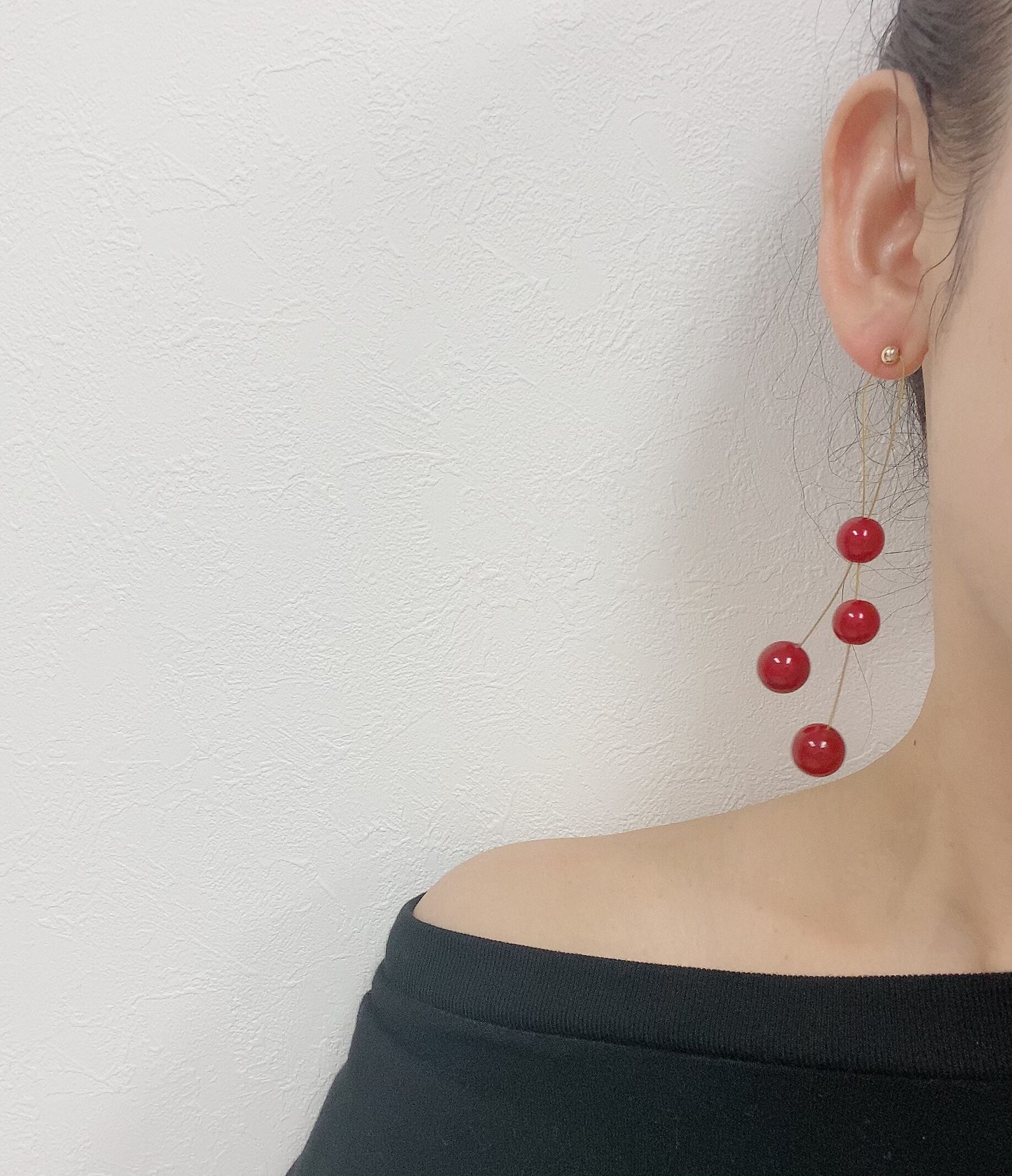 ゆらゆら揺れる赤いパールがかわいいピアスです。珍しい赤パール。