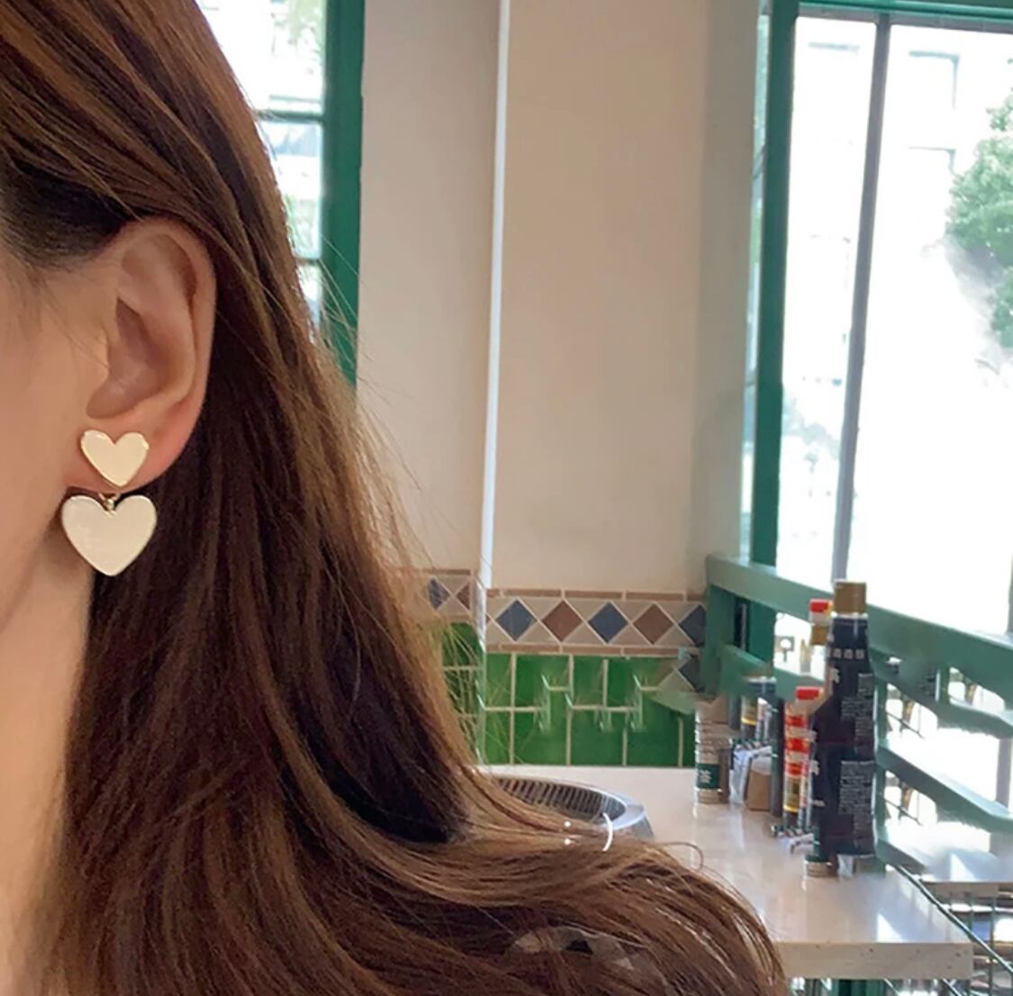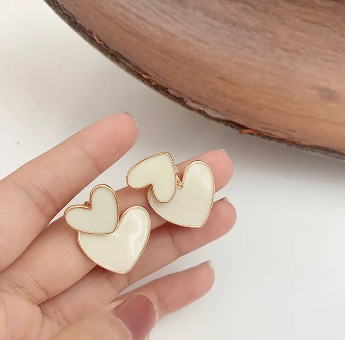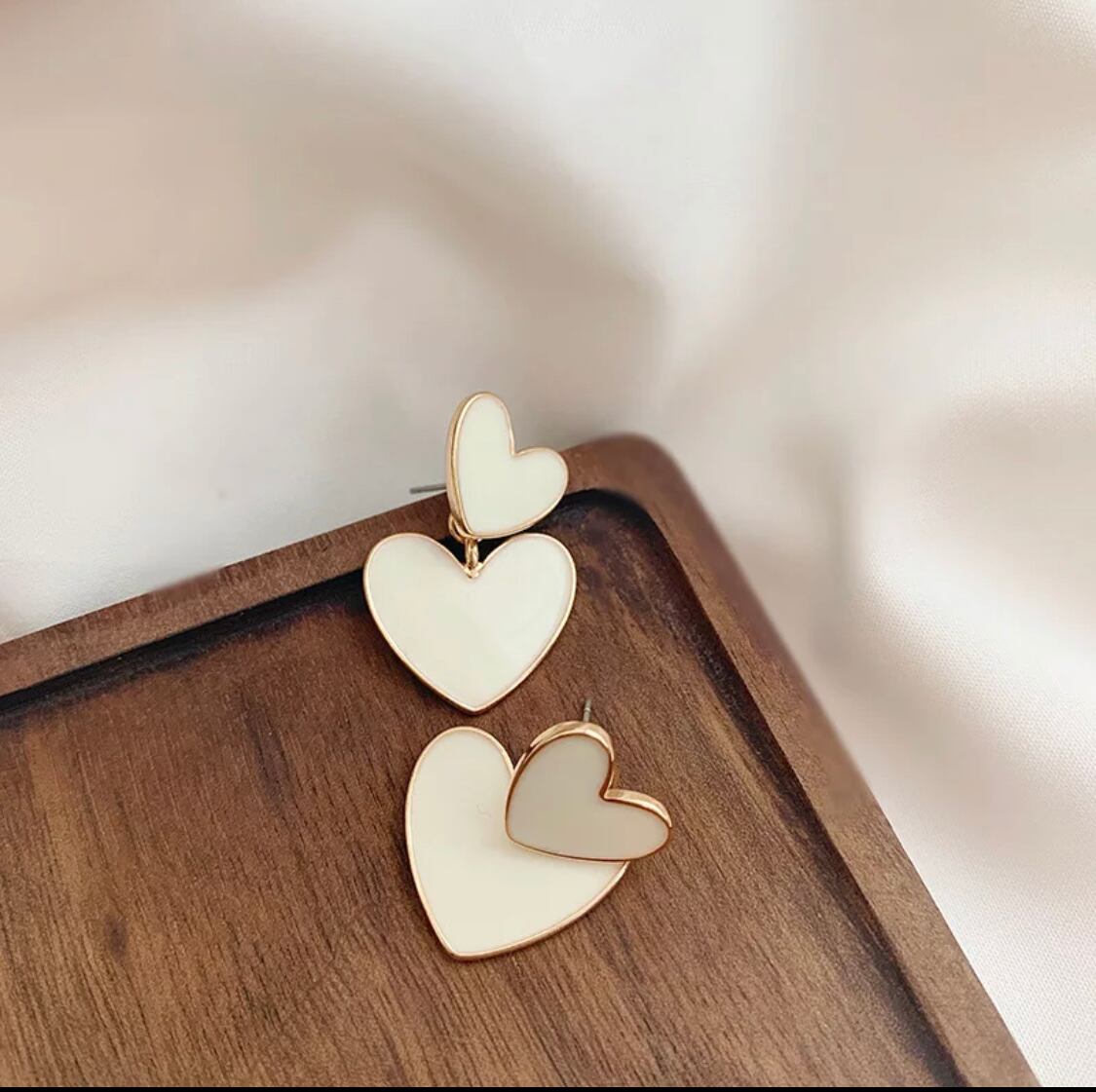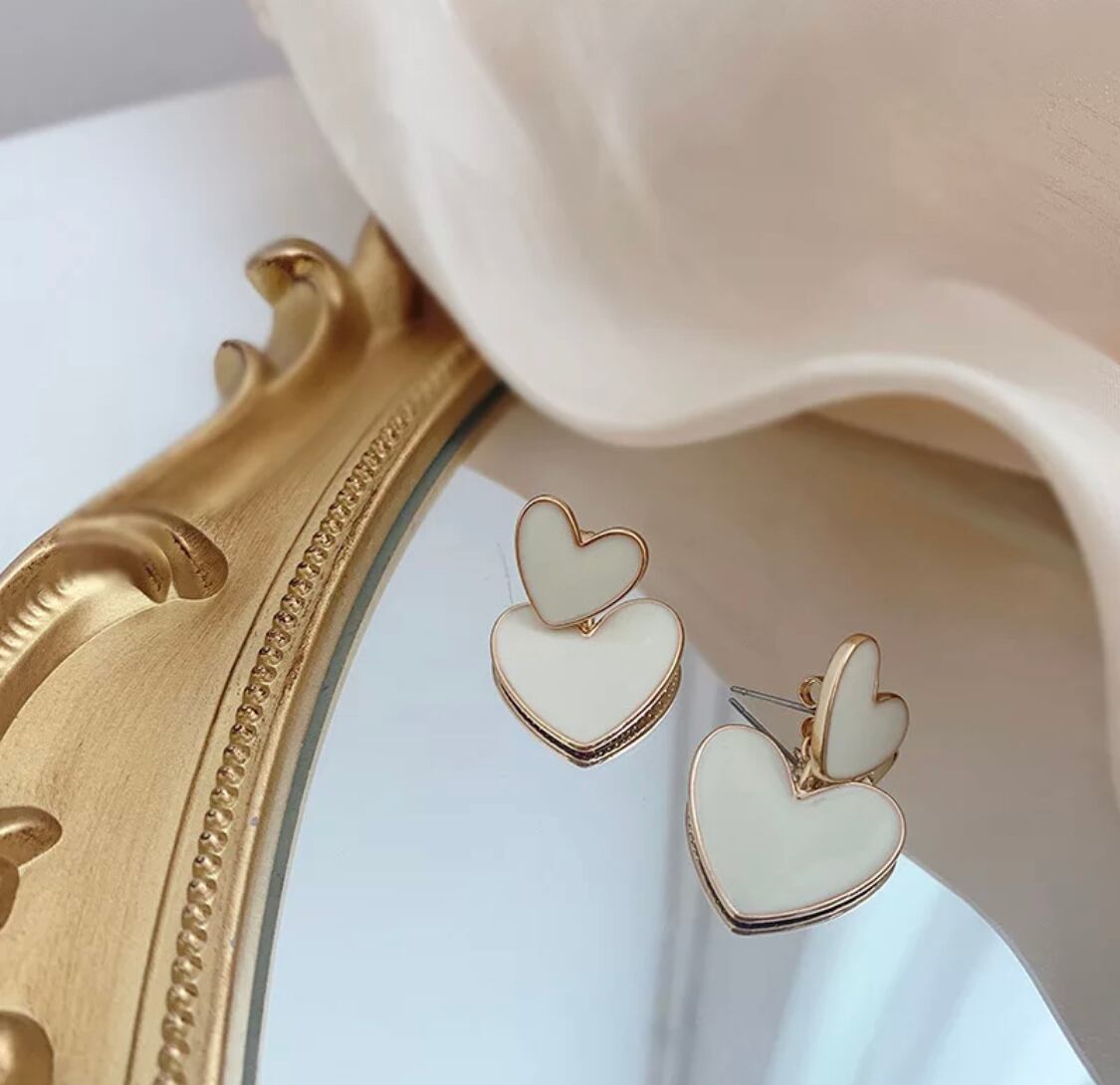ダブルハートホワイトピアス
