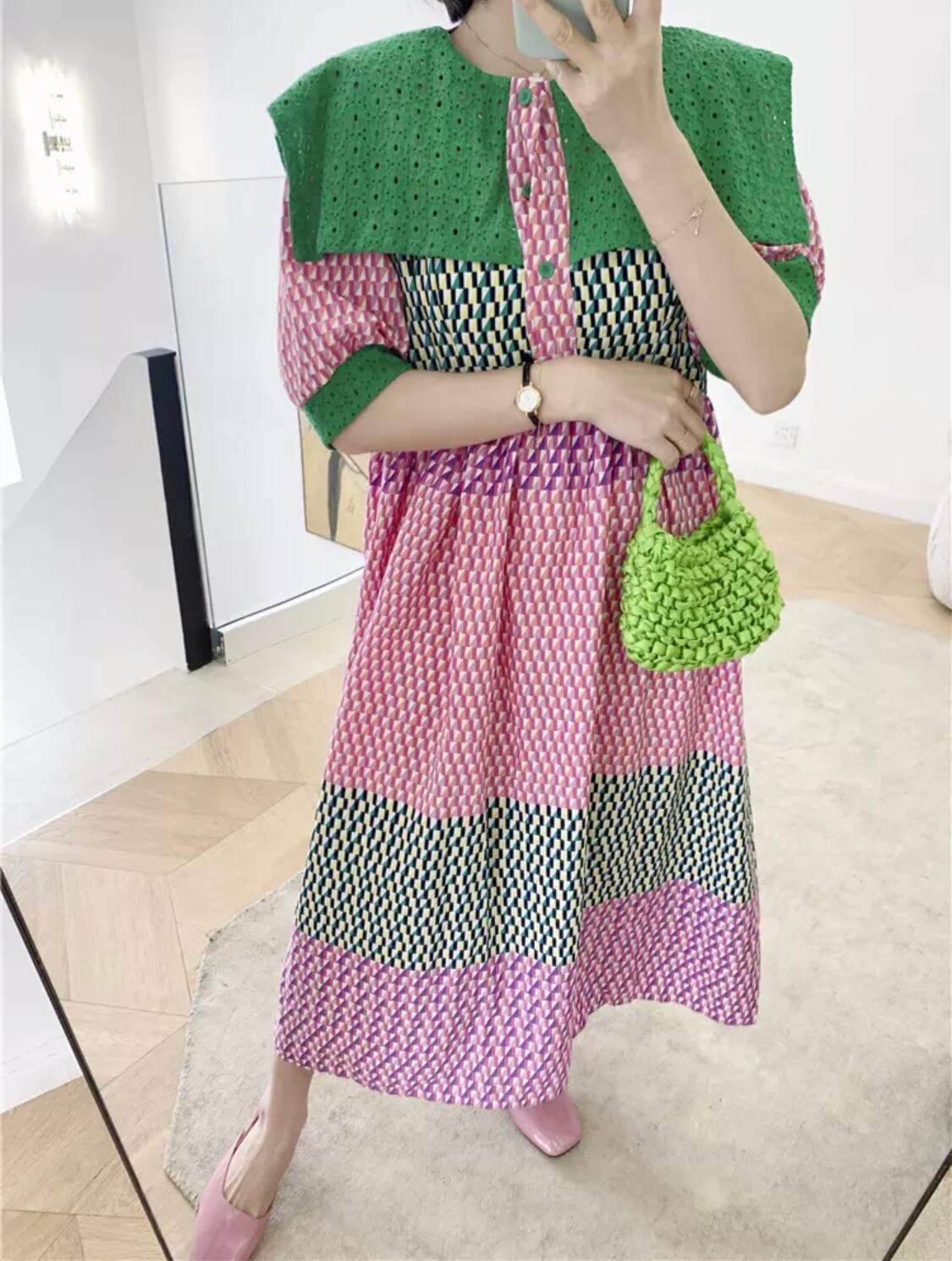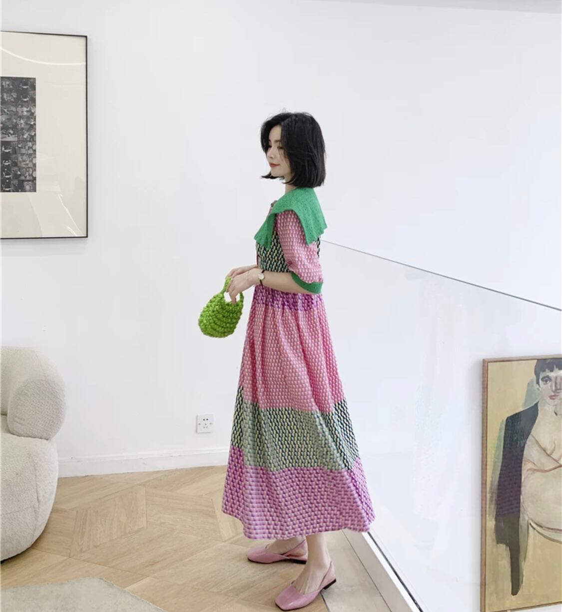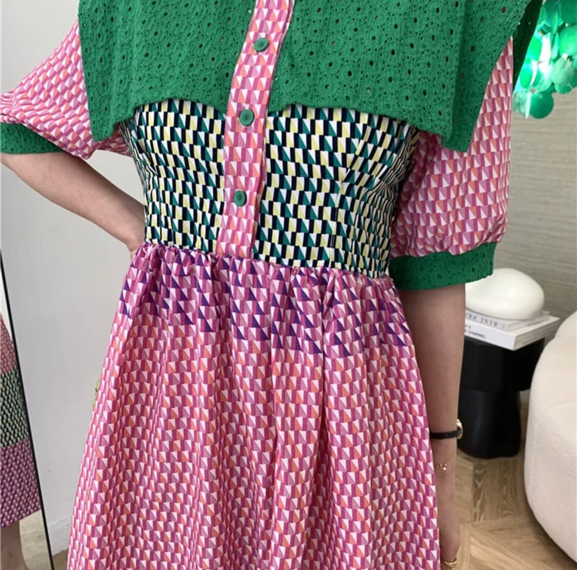 カラーブロッキングワンピース